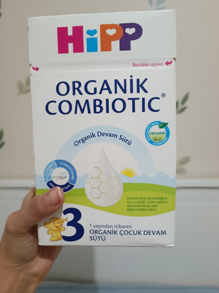 HiPP Organik Combiotic bebek devam sütü, organik içerikli ve açık beyaz renkte ambalajda. Kutuda 'Buradan acınız' yazısı bulunur. (OGLUM MAMADAN KESİLELİ COK OLUYOR SON ALDIĞIMIZ AÇILMAMIŞ ŞEKİLDE ELİMİZDE KALDI). SON TÜKETİM TARİHİ 05.08.2026 GÖRSELDE MEVCUT