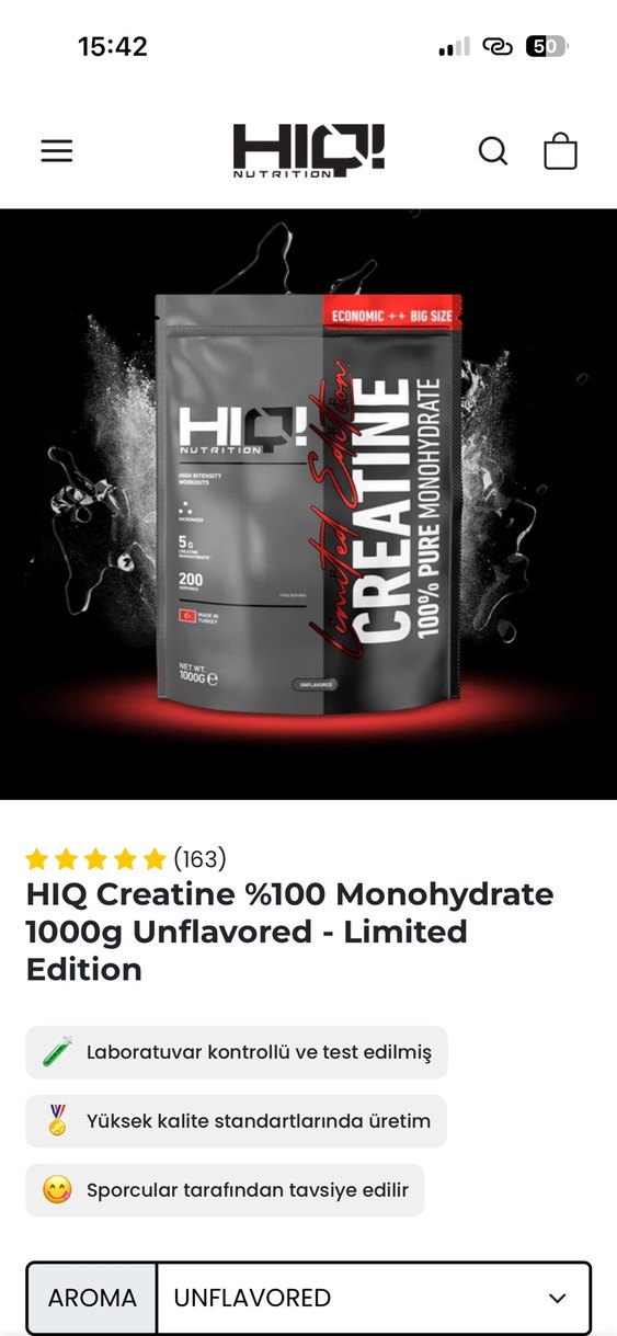 HIQ Creatine %100 saf monohidrat toz, 1000g hiç sadece 1 ölçek kullanıldı başka ürün kullandığım için satıyorum