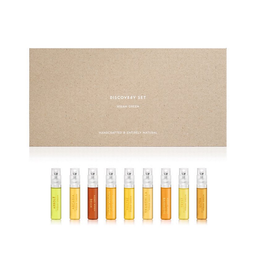 Hiram Green Keşif Seti, dokuz doğal ve el yapımı kadın parfümünü küçük sprey şişelerinde sunar, farklı kokuları denemek için idealdir. 9 x 2ml nish parfüm