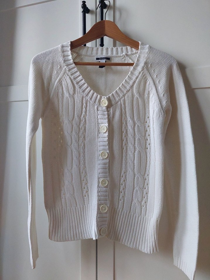 Mango M beden yüzdeyüz pamuk hırka, bir iki sefer kullanıldı sorunsuz, S beden için de uygundur, ekru tonlarında