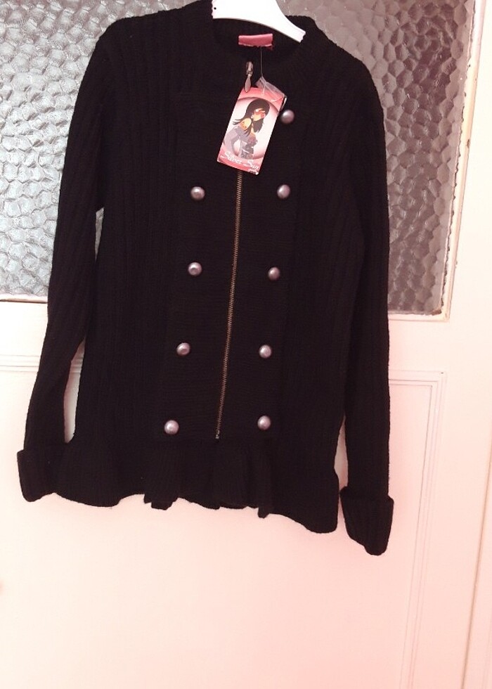fermuarlı siyah hırka sıfır etiketli ölçüleri boy 57 cm iki kol arası 44 cm kol boyu 53 cm hırka #siyah#kazak####