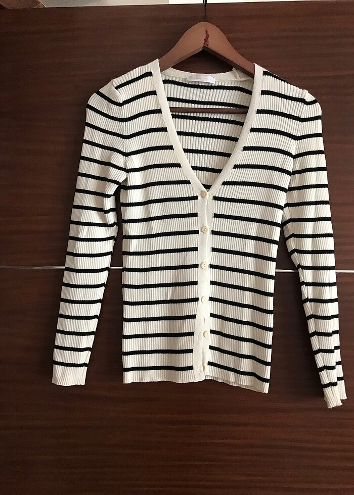 Çizgili önden düğmeli triko hırka