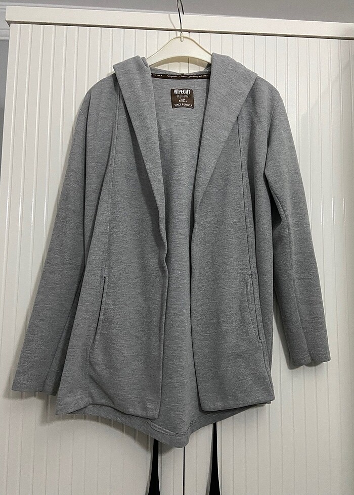 Kapüşonlu cepli rahat hırka. Unisex bir üründür erkekler de giyebilir.