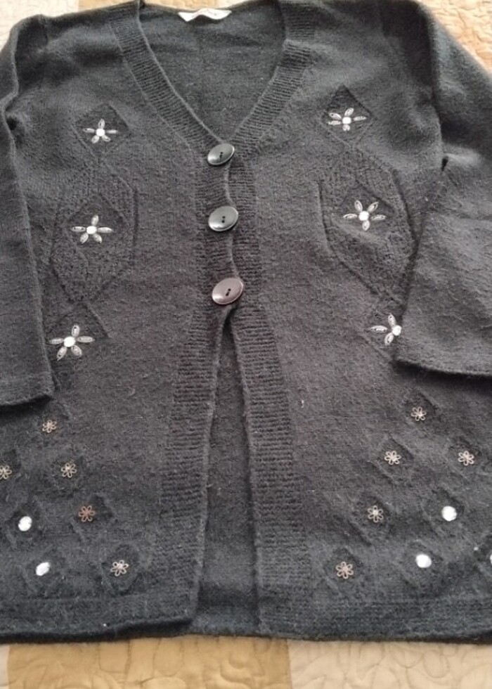 Birkaç kez kullanıldı yün olduğu için hafif tüylenmeler olmuştur Bundan dolayı fiyatı uygun tutuyorum Günışığı sebebiyle ürünün resmi farklı çıkabiliyor Rengi siyahtır Hiçbir deforme yoktur