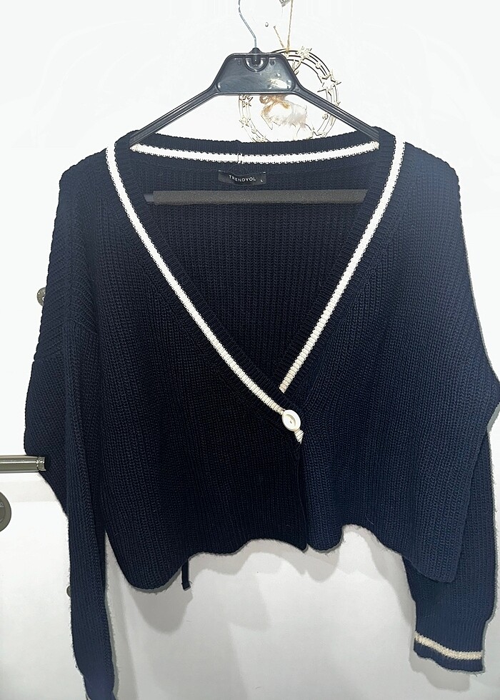 Lacivert tek düğmeli kruvaze hırka, hiç giyilmedi