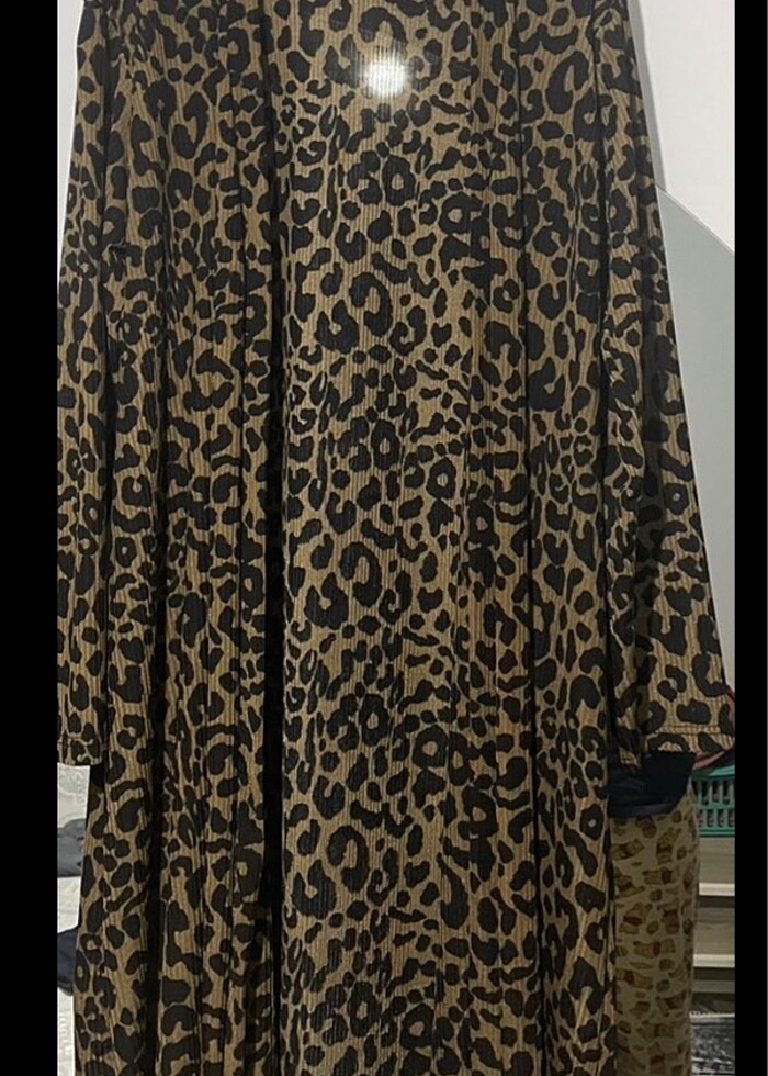 Leopar hırka uzun tesettüre de uygun midi boy 40 beden geniş kalıp