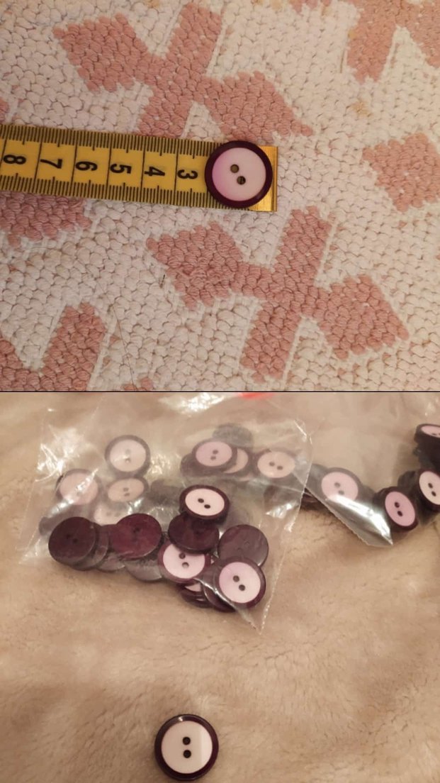 Pembe ortası ve mor kenarlı, iki delikli küçük yuvarlak düğmeler. El işi ve dikiş projeleri için uygundur. Her düğme yaklaşık 1,5 cm çapındadır. Bir pakette 15 adet vardır,paket fiyatıdır. el işi ürünlerinde toplu alımda indirim yapabilirim.