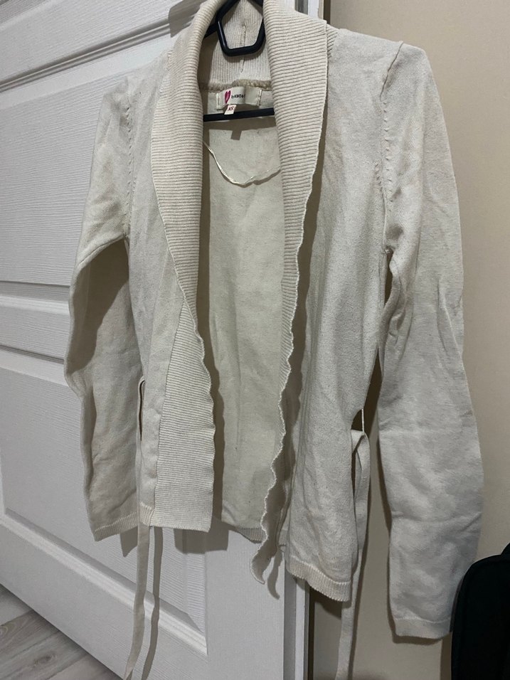 S ve xs bedene uyumlu. Krem rengi midi uzunlukta, kemerli, uzun kollu ve yakası kesik detaylı hırka. Günlük kullanıma uygun, sokak stiline uyumlu, sade ve şık görünümlü.