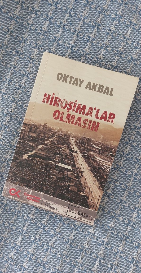 Oktay Akbal'ın "Hiroşima'lar Olmasın" romanı, Hiroşima'nın yıkıcı etkilerini anlatıyor. Kapakta yıkımın çarpıcı bir görüntüsü yer alıyor.