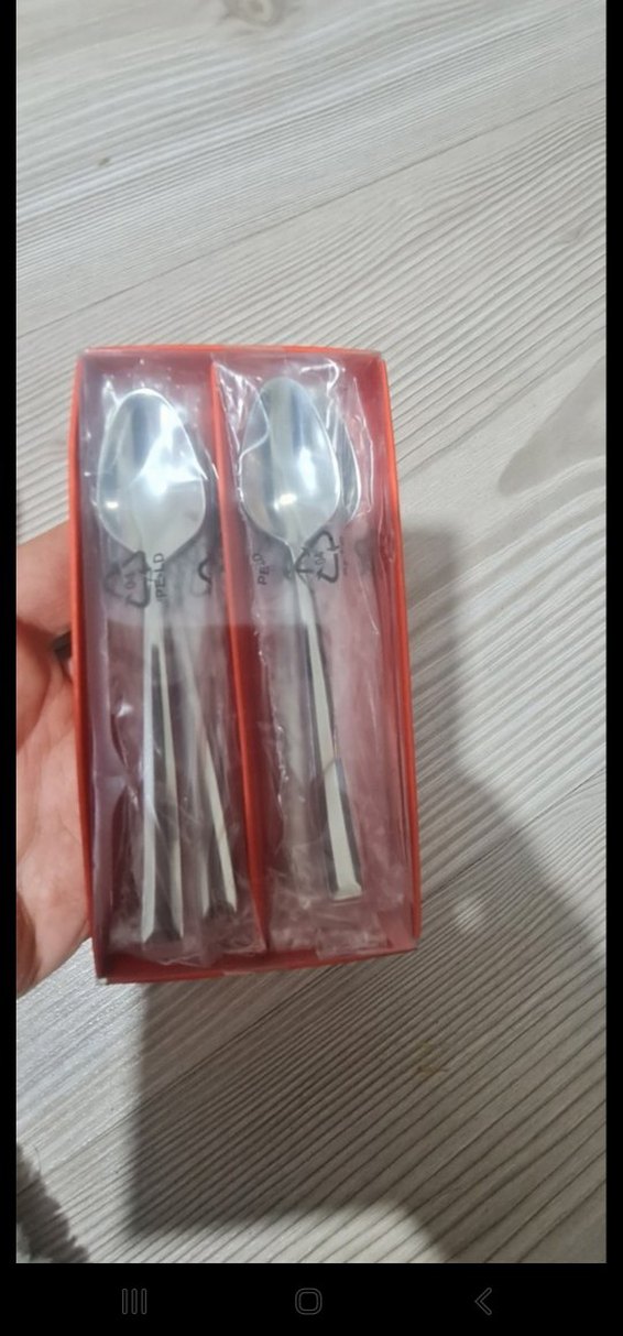 Paslanmaz çelikten yapılmış, gri saplı 6 adet kaşık seti kırmızı kutuda paketlenmiş. Dayanıklı ve kullanışlıdır.