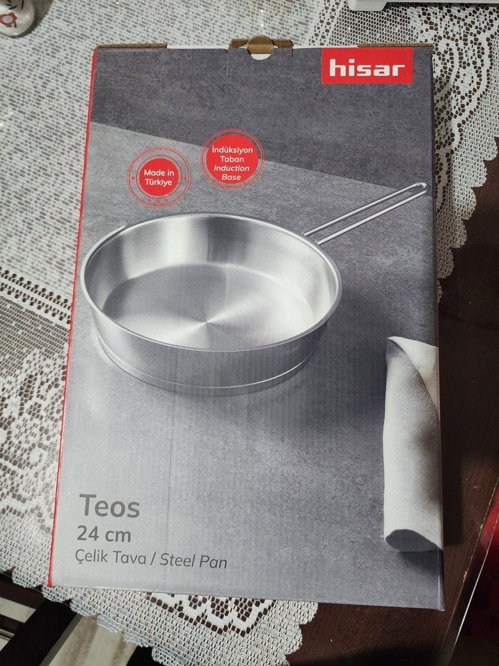 Hisar Teos 24 cm çelik tava, indüksiyon tabanlı ve dayanıklı çelikten üretilmiştir. Türkiye yapımı, güvenilir pişirme sağlar.