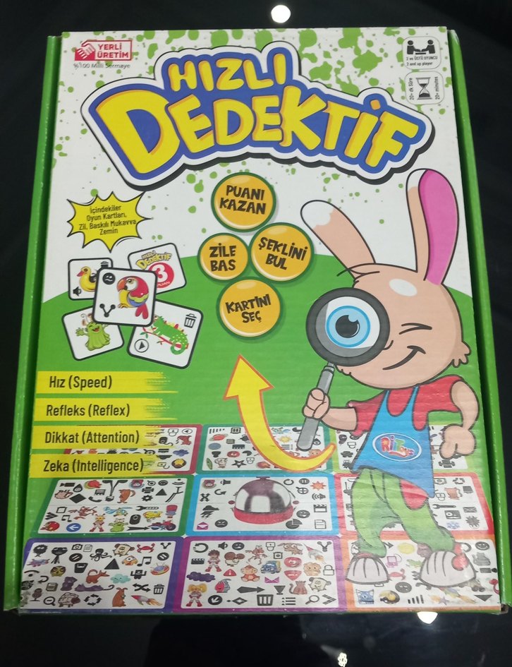 Hızlı Dedektif, renkli kartlar ve zil sesiyle hız, refleks, dikkat ve zekayı geliştiren eğitim oyunudur.