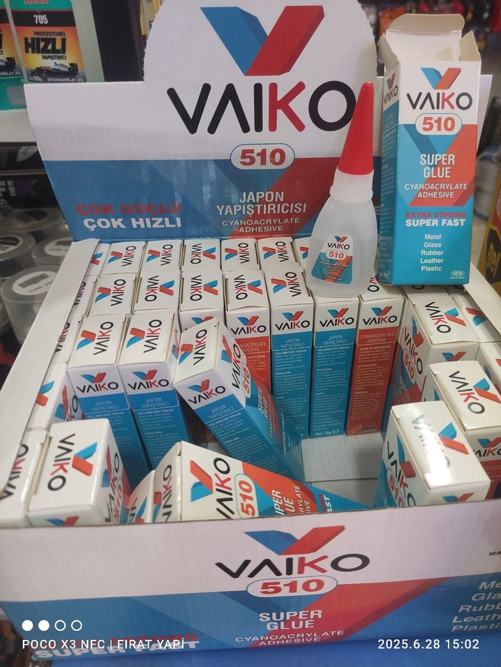 Vaiko 510, ahşap, cam, deri ve plastikte güçlü yapışma sağlayan süper hızlı Japon yapıştırıcısıdır. 3. Âdet fiyatıdır sıfır ürün