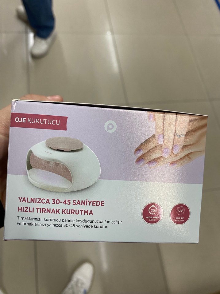 Beyaz tırnak kurutucu, fan ve UV ışığı ile tırnakları 30-45 saniyede hızlıca kurutur. Pratik ve kullanışlıdır.
