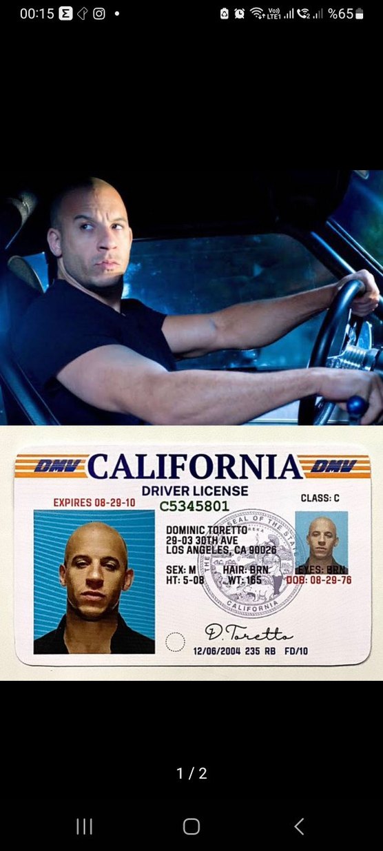 Hızlı ve Öfkeli Dom kimlik kartı 1. kalite baskı olup PVC Kaplamadir