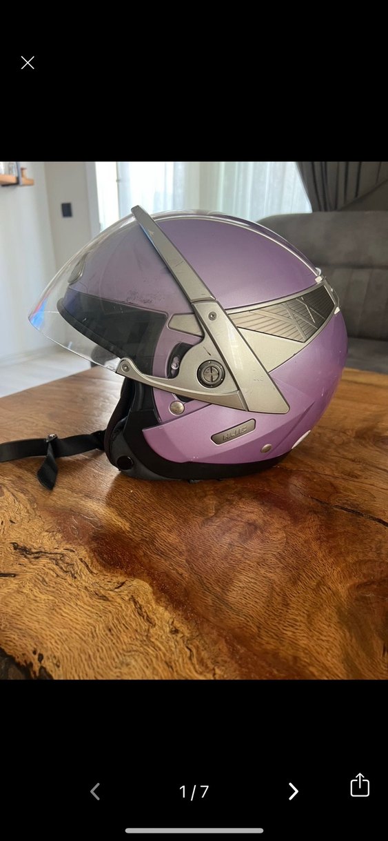 Bedeni XS’dir. Fotoğraflarda göründüğü gibi bir takım deformeleri mevcut. Çizikleri var. Deri kısımlar komple soyuldu. Bir de kask camının sağdaki vidası kayıp.