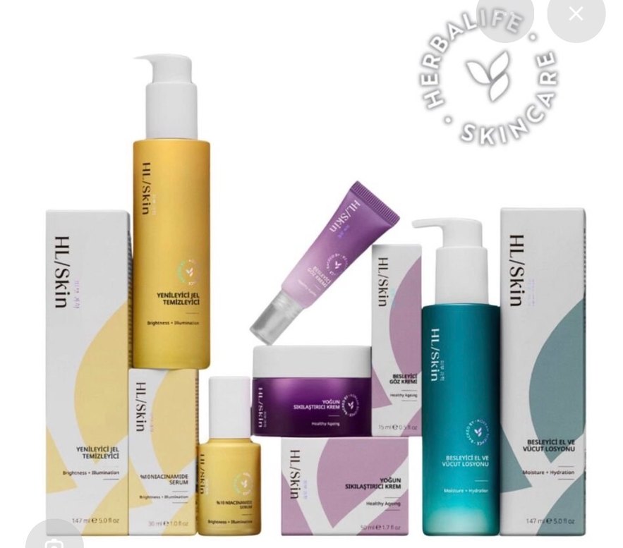 HL/Skin yenileyici jel temizleyici, niacinamide serumu, yoğun sıkılaştırıcı krem ve besleyici el ve vücut losyonu içerir.