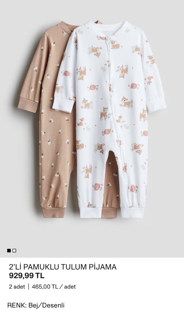 Hm 2'li Pamuklu Bebek Tulum Pijama - Fermuarlı
