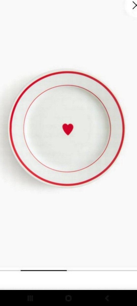 Beyaz tabak üzerinde açık kırmızı kenarlıklar ve ortada küçük kırmızı kalp bulunur.