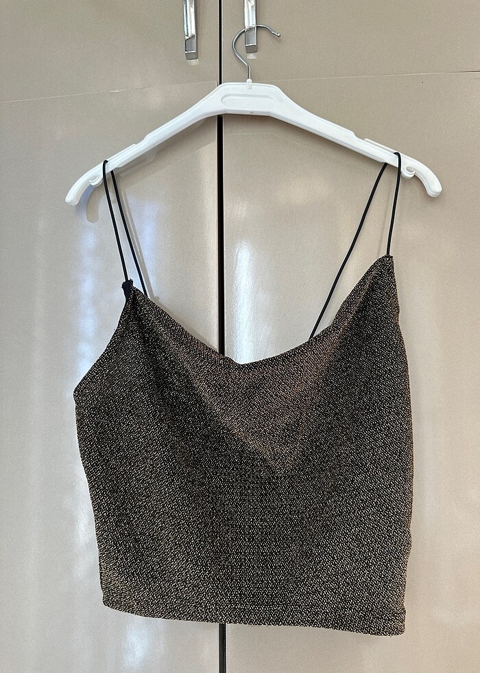 etiketi yok ama hiç giyilmedi esnek kumaş. fotoğrafta çok belli olmamış 3. fotoğrafa bakın lütfen gold renktir