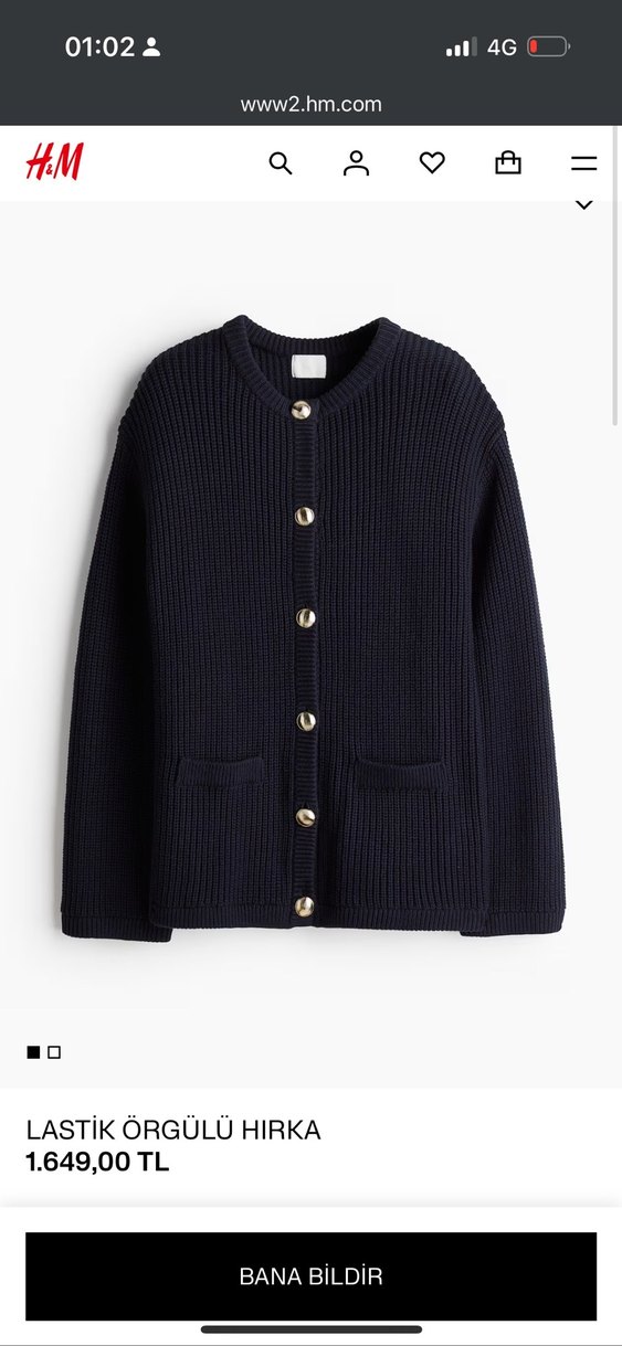 H&M marka Lacivert yün hırka, düğmeli ön, yuvarlak yaka ve uzun kolludur. Normal kesim ve minimalist normcore tarzıyla günlük kullanıma uygundur. 1kez giydim 36-38 bedene rahat olur