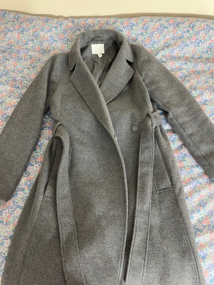 Kırçıllı modeldir, tülenme veya herhangi bir defosu yoktur. Gri renkte, uzun kesim ve regular fit kadın kaban. Uzun kollu, yakası kesimli ve dökümlü tasarıma sahip, yumuşak ve sıcak kumaftan üretilmiştir.