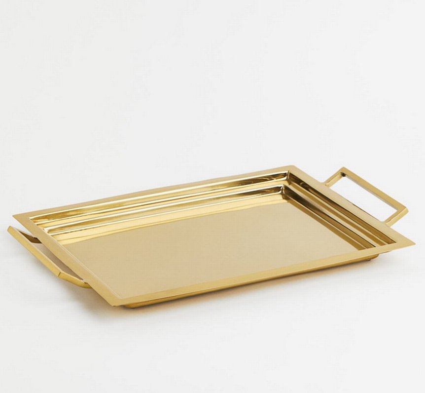 Hm home Gold Tepsi Parlak Altın Renkli Metal Tepsi