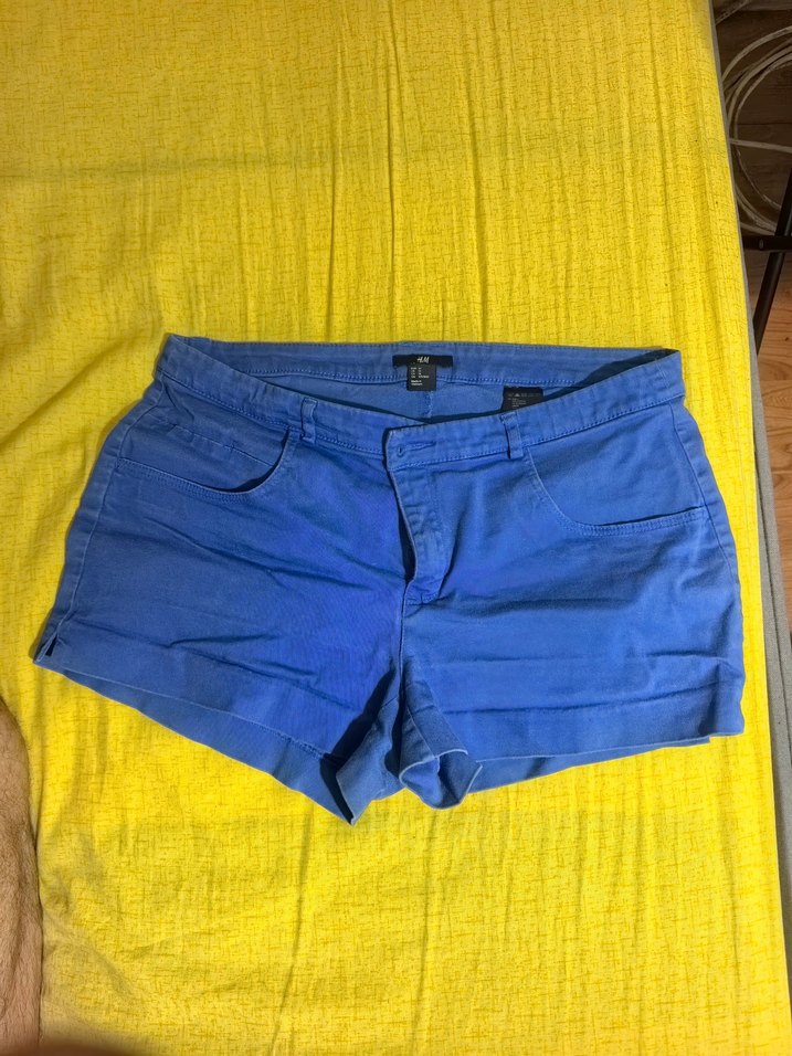 Kadınlar için mavi denim mini şort, bol kesim ve rahat sokak stili. Dış mekanlar için uygun, desen içermeyen koyu renk.