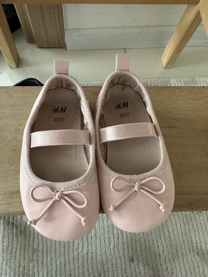 Pembe pastel tonlarında, fiyonk detaylı, kauçuk malzemeden yapılmış kız çocuk babetleri. H&M 20/21 koleksiyonundan, sade ve klasik tarzda.