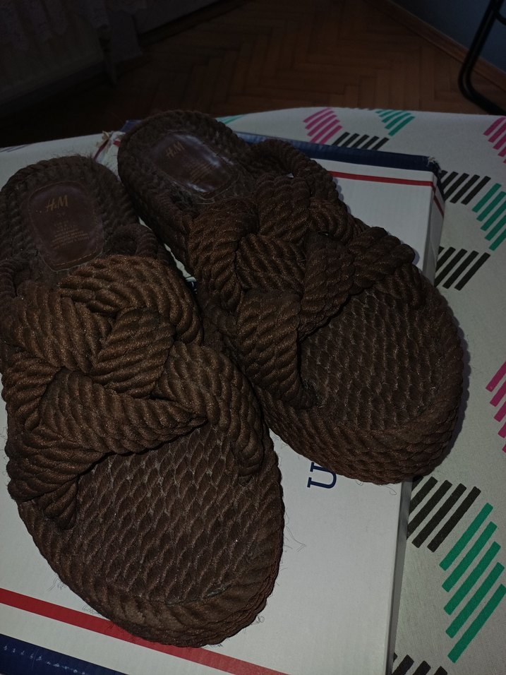 HM marka Kahverengi örgü platform topuklu kadın terlikler, rahat ve bohem çok tarz kaliteli bir terlik