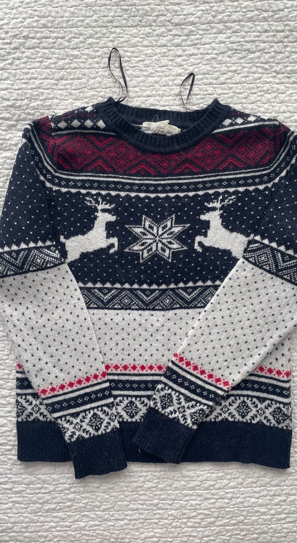 Fitted kesim, yuvarlak yaka ve uzun kollu kadın triko kazak. Lacivert ve çok renkli kış desenleriyle rahat bir model. Günlük kullanıma uygun. ❄️