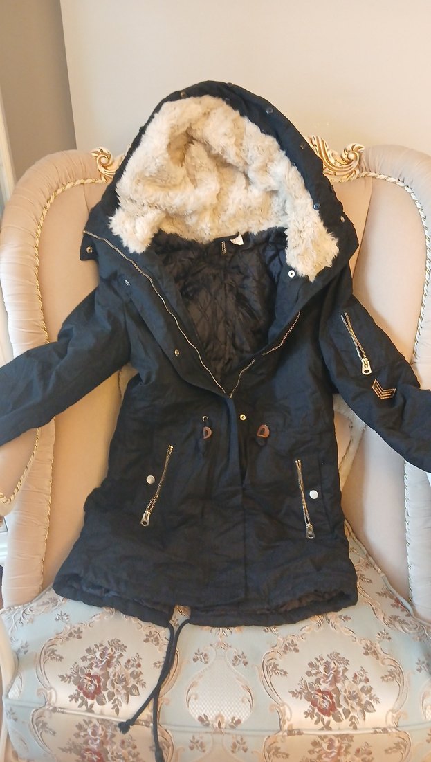 HM marka kürk Detaylı Siyah Kadın Kışlık Mont