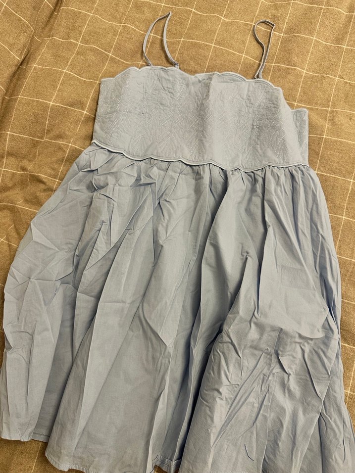 Mavi renkli, bol kesimli ve mini boy elbise sorunsuzdur hiç kullanılmadı