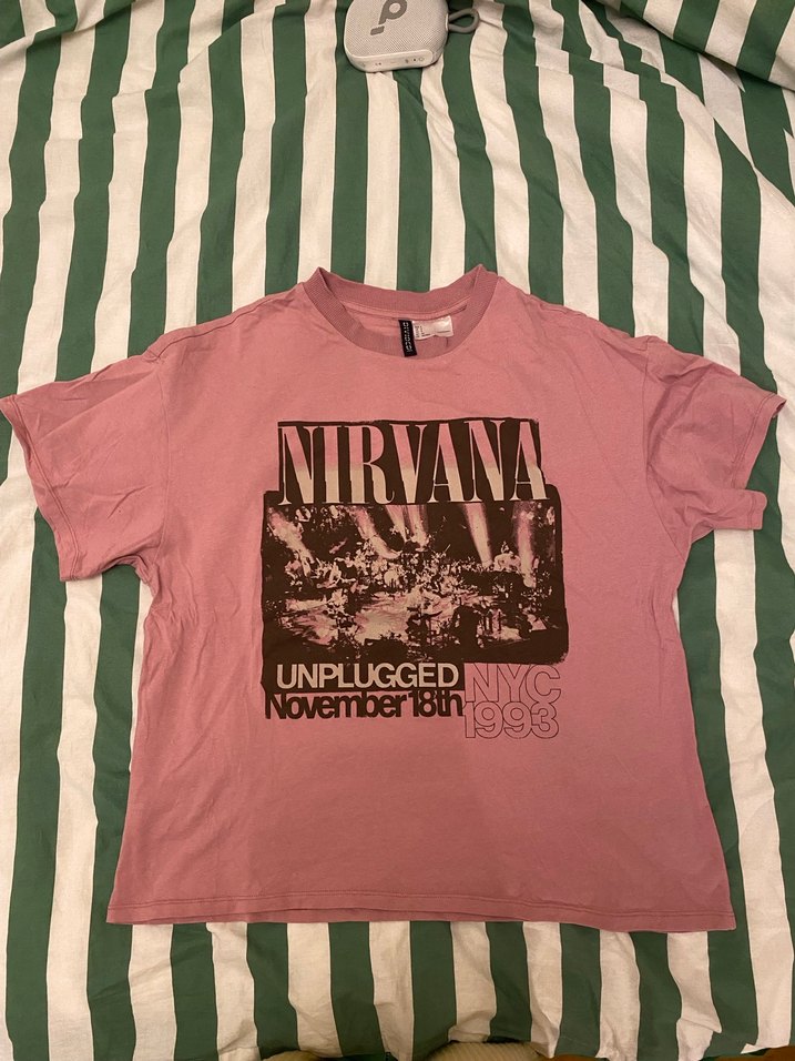Pamuklu, pembe renkli, kısa kollu ve bisiklet yaka tişört. Üzerinde 1993 Unplugged NYC Nirvana baskısı bulunur. Salaş kesimiyle grunge punk tarzını yansıtır.