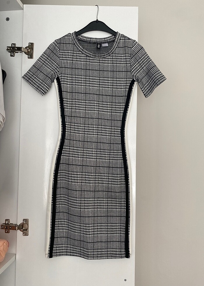 hm siyah beyaz kareli elbise