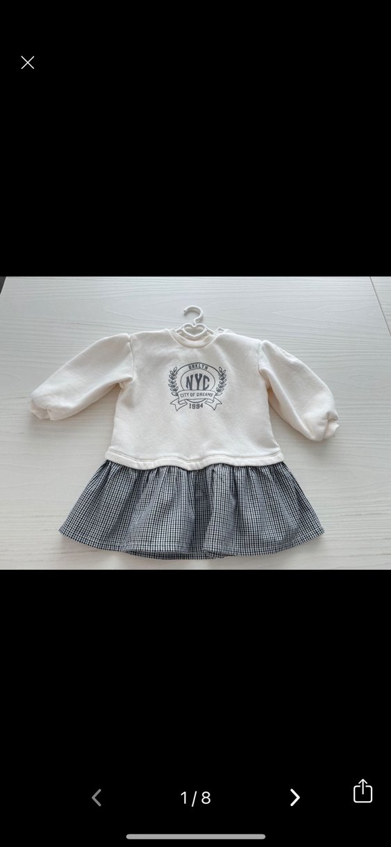 Uzun kollu, yuvarlak yakalı, bol kesim kız çocuk elbisesi. Yumuşak ve sıcak kumaştan, basılı NYC desenli ve belde fırfır detaylı. Gri kareli etek kısmı sokak stili sunar.
