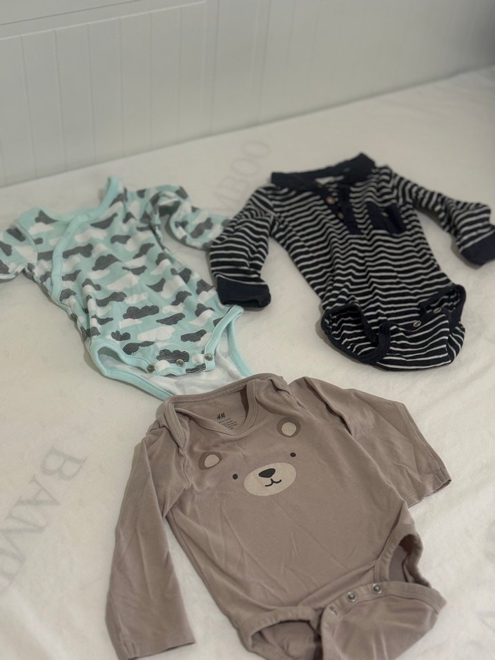 Gri uzun kollu, yuvarlak yaka ve düğmeli bebek body. Pamuklu yumuşak kumaş ve sevimli ayıcık baskısı bulunur.