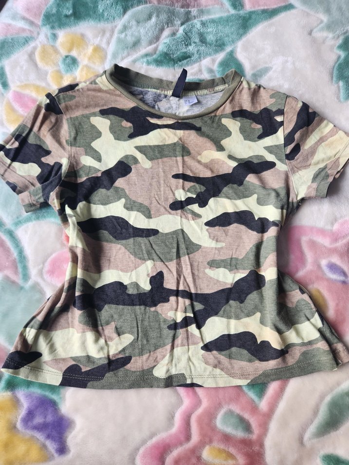 HM XS Beden Asker Yeşili Desenli Tshirt