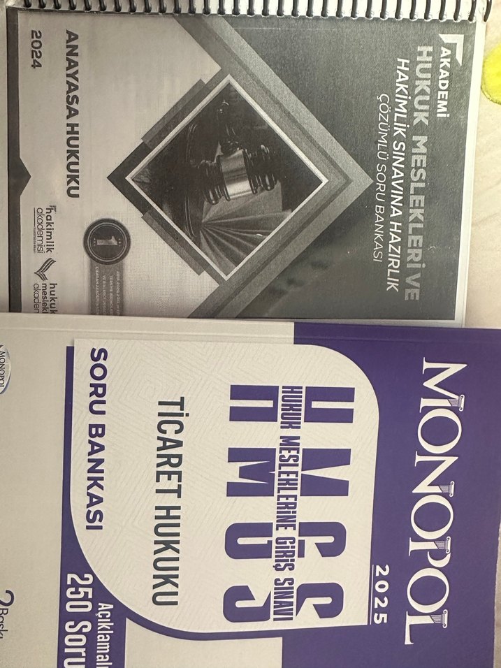2024 basım Akademi fotokopisi sadece soruların altı çizilmiştir. İşaretlenmemiştir. Monopol ticaret hukuku 2025 basım. İşaretlenmemiştir, temiz. 2024 basım Monopol medeni hukuk ilk 34 soru çözülmüştür gerisi temiz