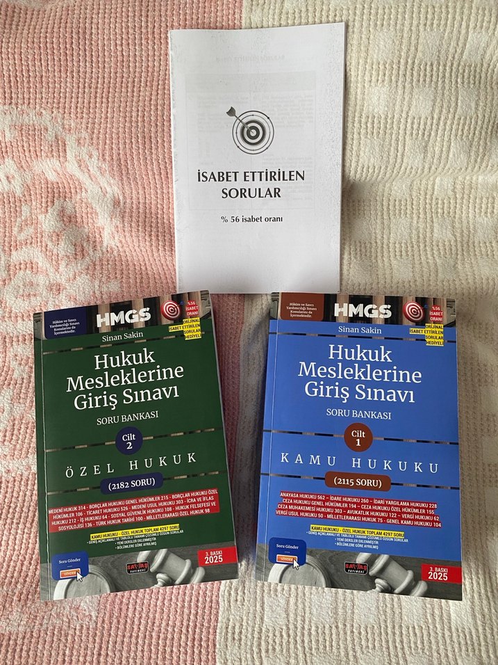 Hukuk Mesleklerine Giriş Sınavı için Kamu Hukuku ve Özel Hukuk konularını içeren iki soru bankası ve isabet ettirilen sorular kitabı seti. (Sadece vergi çözüldü anayasadan da 3 test civarı çözüldü)