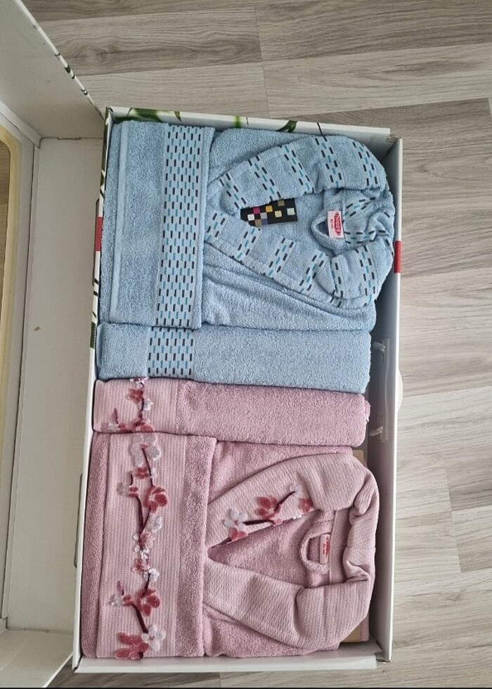 Hobby Bambu Bornoz Seti 2 bornoz, 2 vücut havlusu ve 2 baş havlusundan oluşmaktadır. Bedeni standarttır.