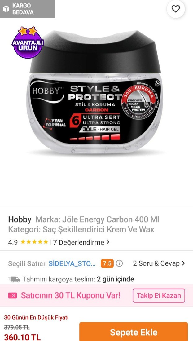 Hobby Jöle Energy Carbon 400 ml ultra sert tutuş sağlar, saç şekillendirme ve koruma sunar. Vegan formül ve mikro protein içerir. ALICISINA ŞİMDİDEN HAYIRLI OLSUN.