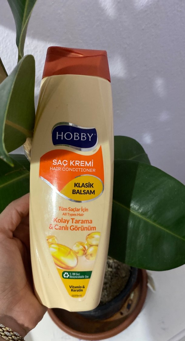 Hobby klasİk balsam saç kremi, tüm saç tipleri için kolay tarama ve canlı görünüm sağlar, vitamin ve keratin içerir. Ürün yarısından fazlası dolu zaten aldığımda da agzına kadar dolu degildi