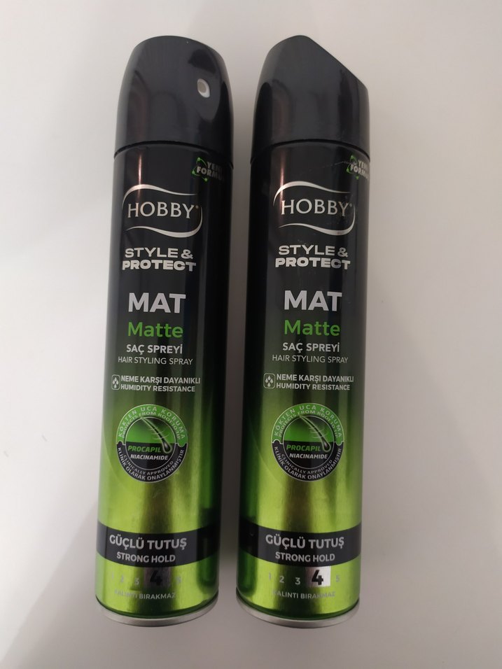 Hobby Style & Protect Mat Saç Spreyi, güçlü tutuş ve neme karşı dayanıklılık sağlar. Mat görünüm ve uzun süreli şekillendirme sunar.