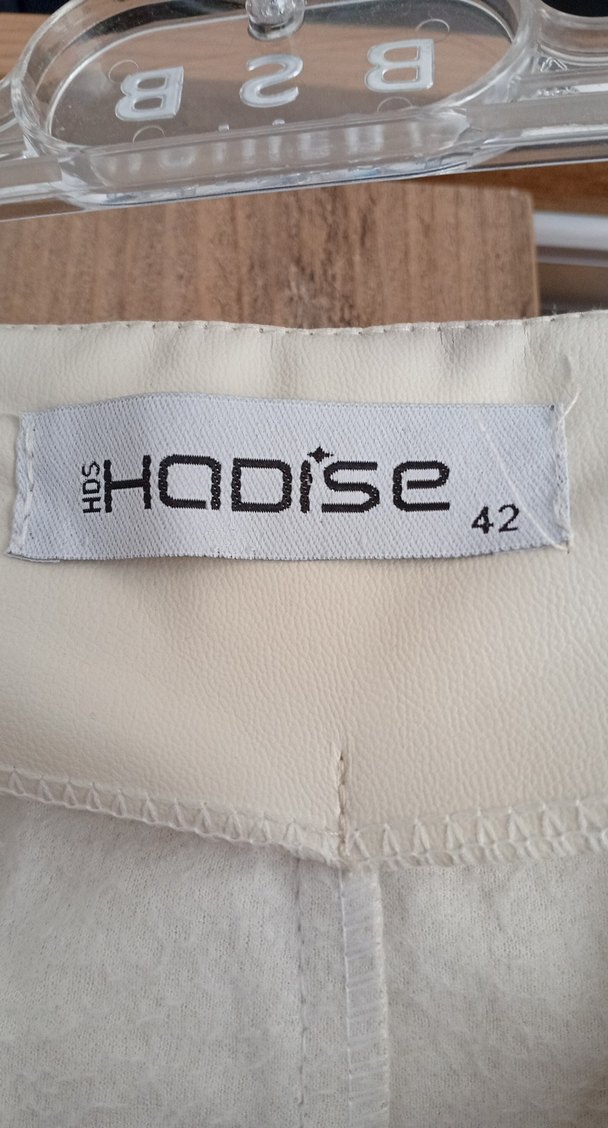 Hodise markalı, beyaz renkte, 42 numara kadın rozeti. Normcore ve athleisure tarzını yansıtan sade tasarım