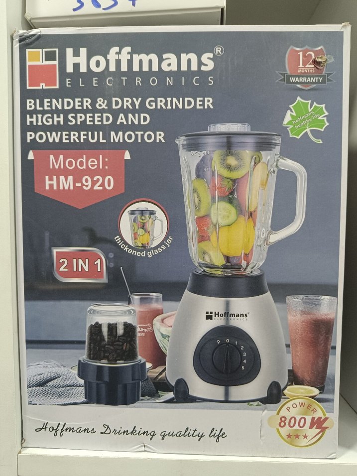 Hoffmans HM-920, güçlü 800W motorlu, yüksek hızlı 2'si 1 arada mikser ve kuru öğütücü. Kalın cam hazne ve dayanıklı performans sunar.