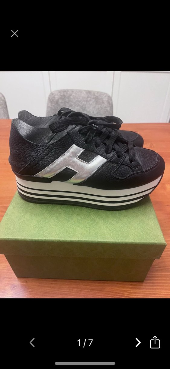 Terlik olarak da giyilebiliyor Platform topuklu, çizgili kauçuk tabanlı, siyah ve gri detaylı, cırt cırtlı kadın spor ayakkabısı, trend sokak stiline uygundur.