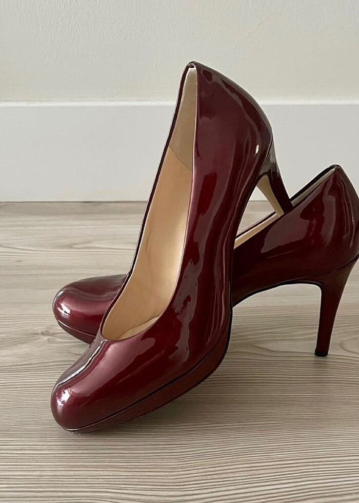 Hiç giyilmedi. İsviçrede 159.- Frank’a almıştım (yaklaşık 8,500 TL). Gerçek deri, oldukça kaliteli, şık ve rahat bir ayakkabı. Topuğu 9 cm.