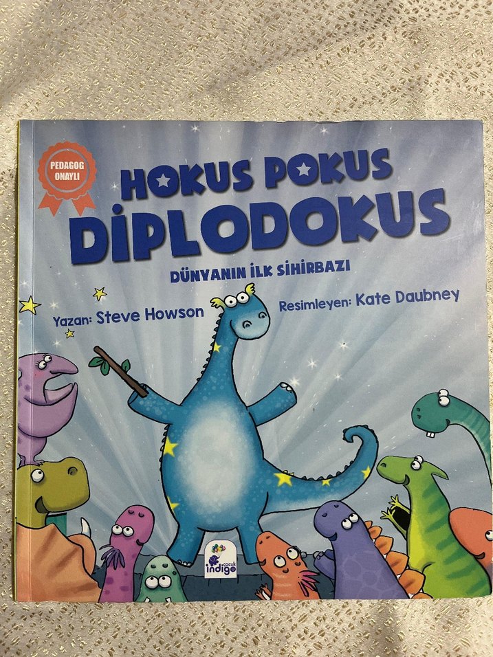 Steve Howson'ın yazdığı, Kate Daubney'nin resimlediği Hokus Pokus Diplodokus çocuk kitabı, renkli dinozor karakterleri içerir ve pedagojik onaylıdır.