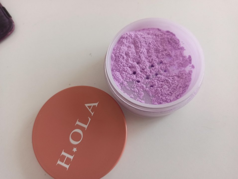 Hola mor renkli, ince dokulu toz pudra. Yumuşak ve doğal bir görünüm için uygundur. Süzgeçli ve kahverengi kapaklı kutuda.3 kez kullanilmistir Urun az degildir ters kaldigi icin kapagin ust kismina cikmistir